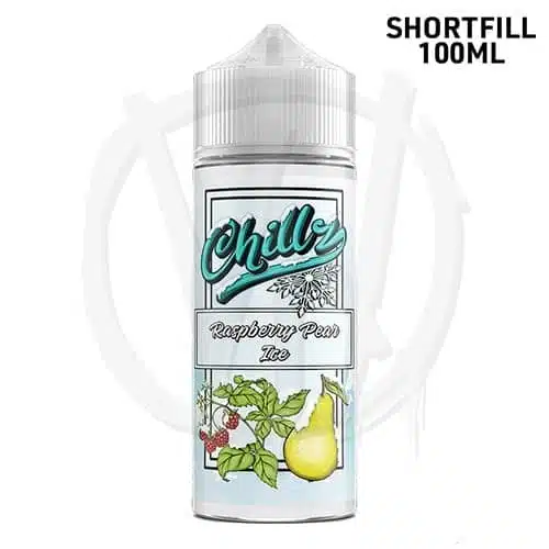 Chillz 100 – Raspberry Pear Ice är en shortfill e-juice med en volym på 100 ml i en 120 ml gorillaflaska. Produkten är nikotinfri och används tillsammans med nikotinshotar som köps separat. Den är kompatibel med de flesta e-cigarettsystem.