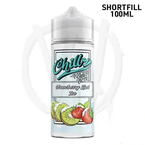 Chillz 100 – Strawberry Kiwi Ice är en e-juice i shortfill-format med smak av jordgubbe och kiwi, samt en kylande effekt. Flaskan rymmer 120 ml och innehåller 100 ml e-vätska, vilket gör den kompatibel med nikotinshots som köps separat.