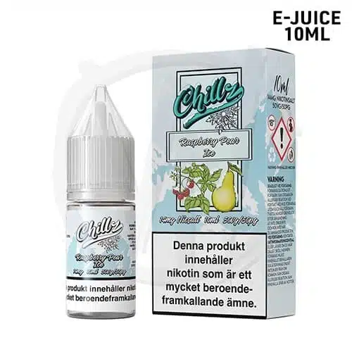 Chillz 10ml – Raspberry Pear Ice är en e-juice med smak av hallon, päron och en svalkande känsla. Produkten innehåller saltnikotin och är avsedd för användning med e-cigarettsystem. Varje flaska innehåller 10 ml vätska och ingår i Chillz-serien.