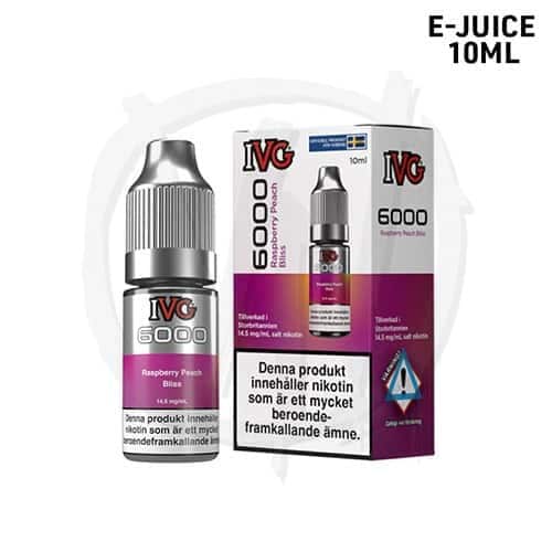 IVG 6000 Raspberry Peach Bliss är en 10ml saltnikotinvätska med smak av hallon och persika. Vätskan innehåller 14,5mg saltnikotin och är gjord för podsystem och MTL-vapes. Med en VG/PG-blandning på 50/50 får du en balanserad vaping som passar de flesta podsystem.