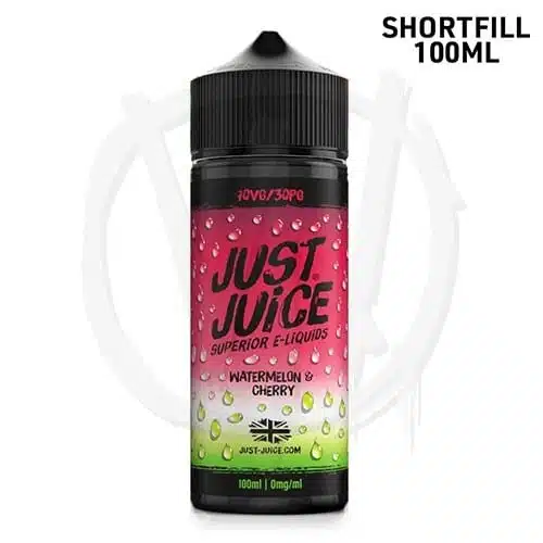 Just Juice 100 – Watermelon Cherry är en nikotinfri shortfill-juice på 100ml med smakerna vattenmelon och körsbär. Du kan blanda den med nikotinshot för att själv bestämma nikotinstyrkan, eller behålla den helt nikotinfri.