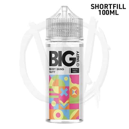 The Big Tasty Berry Bang Taffy är en nikotinfri shortfill på 100ml som du blandar själv med nikotinshot. E-juicen har en smakprofil med bär, kola och godis. Med ett VG/PG-förhållande på 70/30 är den gjord för direkt lungandning (DTL).